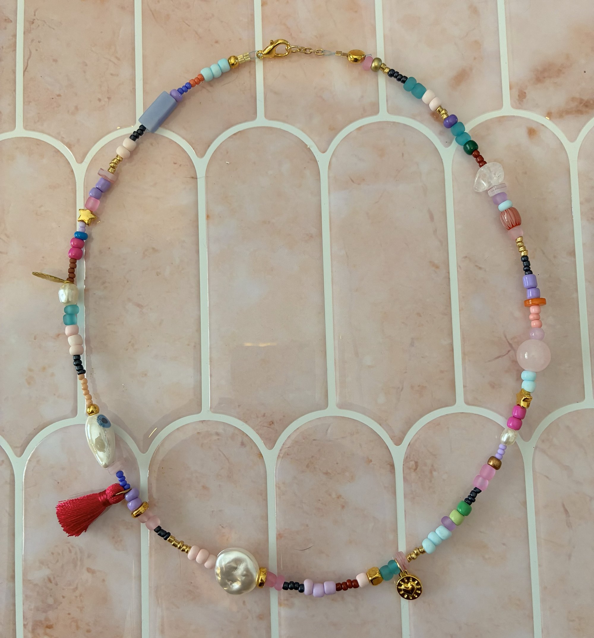 Add a pop of colour and personality to your look with a handcrafted beaded necklace. Each piece is made with love and designed to stand out—perfect for layering or wearing solo.